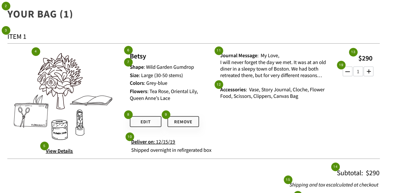 With the Story Journal in concept 3, users stated the importance of including the message in the flow, and how combining your story along with the meaning of the flowers is what makes the gift so special and unique. That clarity in the display of the personalized message fosters confidence in the customer’s purchases.